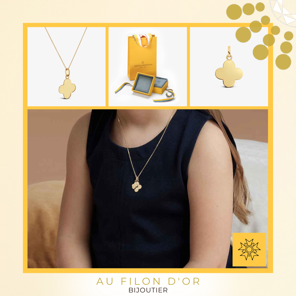 Pendentif croix trèfle en or jaune 18 carats, 14 millimètres de la Maison ARTHUS BERTRAND